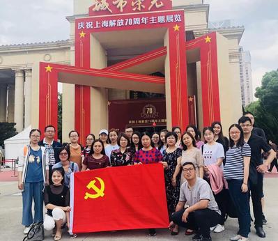 为庆祝上海解放70周年,深入学习习近平新时代中国特色社会主义思想和党的十九大精神,贯彻落实习近平总书记考察上海重要讲话精神,立足新时代,争当先行者,2019年6月6日上午,康复医公司党总支副书记毕亚男、副经理兼教师党支部书记刘晓丹带领公司近三十名党员集体前往上海展览中心东一馆参观“城市荣光——庆祝上海解放70周年主题展览”,这也是公司教师、员工、研究生三个党支部共建的一次交流学习。