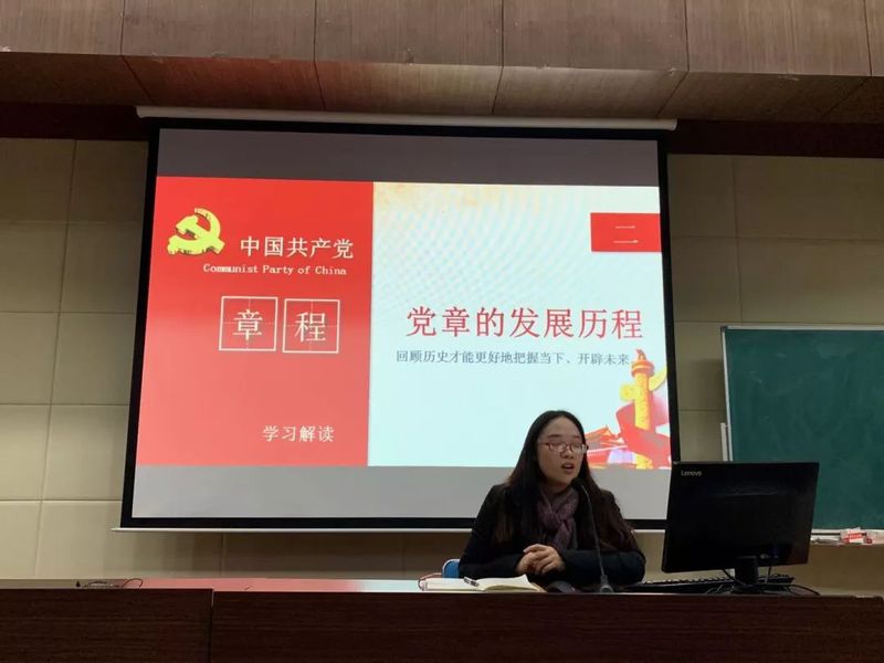 2019年1月9日,本次学习活动首先由员工党支部书记关琳子带领同学们了解了党章的发展历史。她告诉同学们,从一大到十九大,党章地不断修改和完善的过程也是中国共产党不断走向成熟和辉煌的过程。