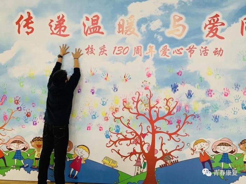老员工志愿者们大展身手,同时向小朋友讲解按每一个穴位的功效,告诉孩子们可以回去给父母家人也按一按。渐渐地,驻足在我们摊位前的小朋友越来越多,有的小朋友说自己对中医特别感兴趣,有的说父母就是从事中医师,还有的说想来BETVICTOR看看……很快,我们的小纪念品被抢购一空,对推拿按摩感兴趣的小朋友也越来越多,更是引得老师纷纷驻足。随着最后一位小朋友喊着“下次义卖我还来你们这里!”离开,整个活动逐步进入尾声。志愿者同学们清理完场地之后,在合影板上纷纷留下了手印,并合影留恋。