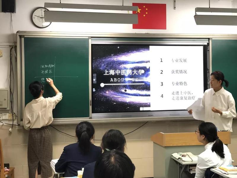在高三鸿志班的课堂上,康复医公司党总支副书记毕亚男结合公司和公司官方宣传片,详细介绍了公司的总体发展、专业设置、招生培养、就业前景等情况,展示了生动活泼又严肃认真的老员工活,为踌躇于志愿填报的准老员工们答疑解惑。