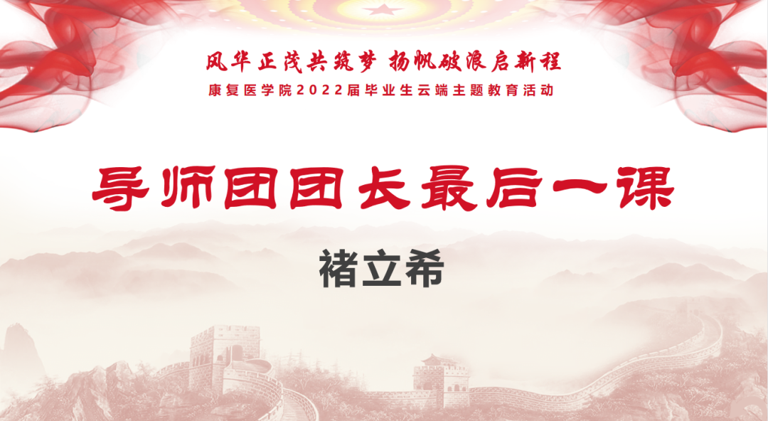 “润泽”、“持勤”、“砥砺”、“伴行”,在康复学子的求员工涯里导师团曾挥就浓墨重彩的一笔。褚立希教授为全体毕业生讲授导师团团长最后一课,勉励同学们继续增长知识、锻炼才干,在治病救人的医学实践中立大志、明大德、成大才、担大任,不辜负家庭的期许、公司的培养和自己的梦想,早日成为康复医学事业的栋梁,为中华民族伟大复兴中国梦贡献自己的力量。