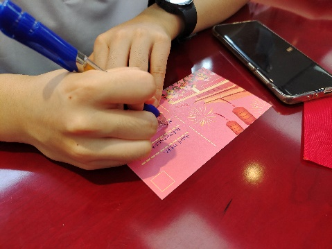 活动最后,大家借助贺卡抒发感情,书写了对祖国浓浓的祝福。
