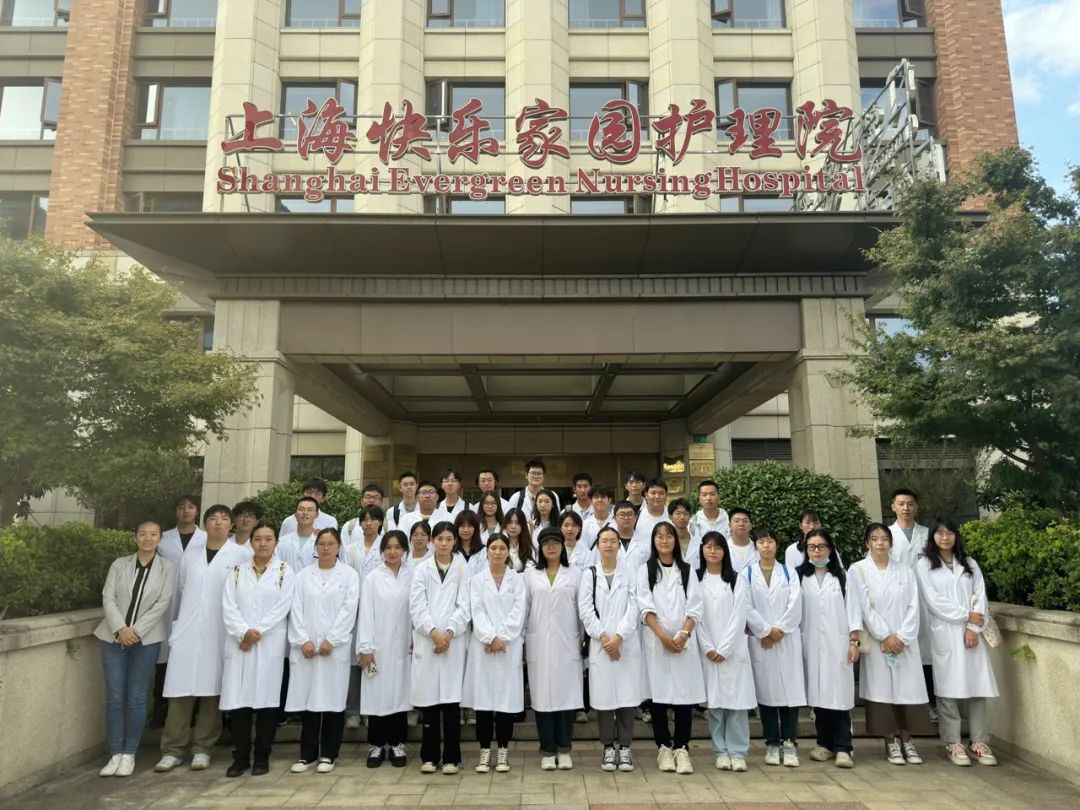 同学们还参观了上海快乐家园护理院,医院老师首先向大家介绍了临床康复流程、复合式老年社区模式、作业治疗区和物理治疗区设置,以及康复大厅中的康复器械设施的使用方法和注意事项。在部分同学参与体验之后,同学们前往中医针推治疗室和老年护理病区等区域参观学习。