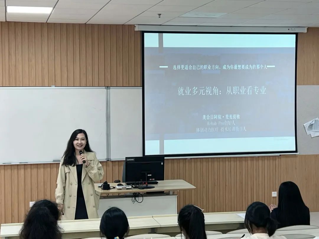 本期“追梦大讲堂”邀请了优秀员工、Rehab Pro培训公司创始人美合日阿依·麦麦提敏学姐为同学们带来了题为“就业多元视角:从职业看专业”的职业生涯规划指导讲座。小美学姐从康复行业业态、职业发展路径以及青春寄语等多个方面展开了深入而富有洞察力的讲解。首先,小美学姐鼓励同学们在大一期间就要着手进行生涯规划,明确奋斗目标,并将其付诸实际行动。其次,小美学姐通过分析就业市场,告知同学们要明确工作岗位的需求以及需要具备的能力,她强调要充分了解职业的全貌,以及在实际应用中如何运用专业知识。最后,小美学姐寄语同学们:“未来充满着无数的可能性,机会永远留给已有准备的人!”她真诚祝愿每位同学都能找到最适合自己的方向,成为心中最想要成为的那个人!
