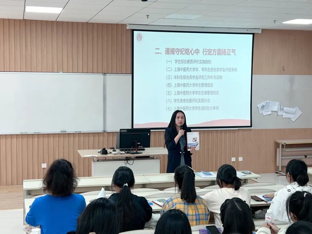 毕亚男带来题为“强思想 守制度 建新功”讲座,首先带领同学从“六个坚持”深刻领会习近平新时代中国特色社会主义思想的理论精髓,共同学习领会习近平总书记的“青年观”,鼓励大家努力成为有理想、敢担当、能吃苦、肯奋斗的可堪大用、能担重任的栋梁之材。此后,毕老师详细解读了校级院级员工管理相关规定,重点聚焦综合素质评价、奖学金评定、宿舍安全管理、考试纪律要求、违规违纪处分等重要注意事项。毕老师的讲解帮助新生们深化理论武装,筑牢思想基础,建立正确的行为规范,培养对规章制度的尊重和遵守,促使新生们努力成为德智体美劳全面发展的新时代康复创新人才