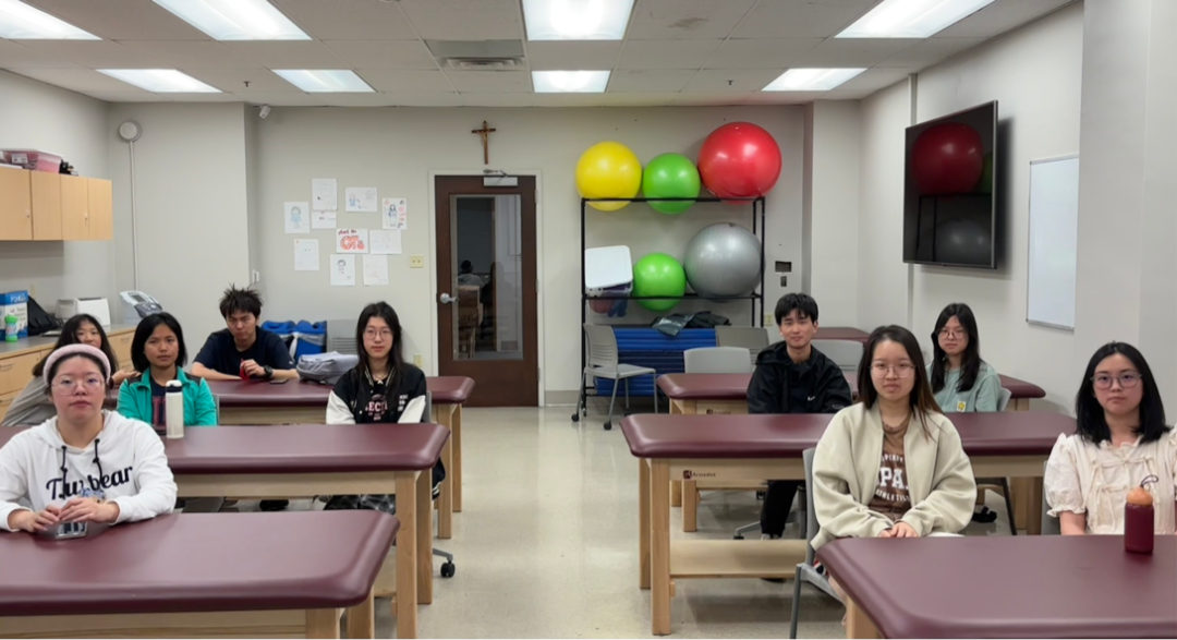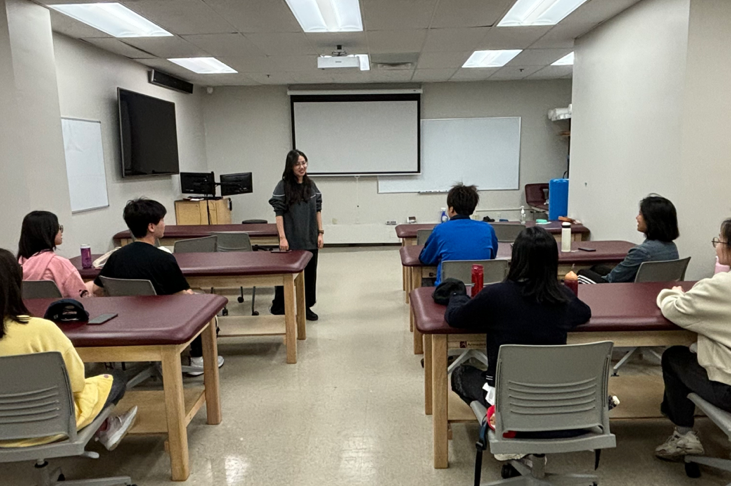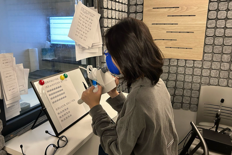 529日,杜肯在读研究生田学姐为我们介绍了她正在开展的研究:普通话词汇声调的空气动力学、声学和感知特征。学术交流之余,学姐还和我们分享了自己在美国的升学经历生活日常等等。交流会后,我们参与了实验,感受声音背后的奇妙原理。