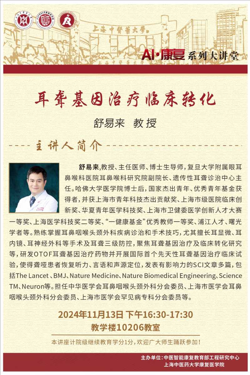 活动主题:AI·康复系列大讲堂:耳聋基因治疗临床转化