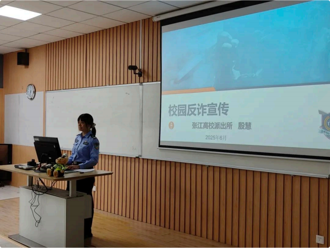 2025 年 6 ⽉ 13 ⽇下午 ,为增强学⽣的安全意识和法治观念 ,切实筑牢校园安全 “ 防护墙” ,康复医公司特邀张江⾼校派出所⺠警殷慧开展 “ 电信⽹络诈骗 ,校园反诈宣传” 安全教育主题活动。康复医公司党委副书记毕亚男、公司辅导员王馨娅、丁禹洁出席 ,本科⽣及研究⽣参加。