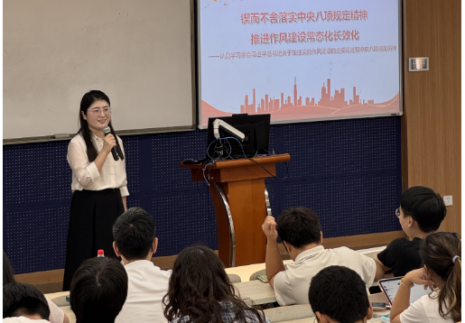 上海市委党校教师赵亚楠做《认真学习领会习近平总书记关于加强党的作风建设的重要论述——学习贯彻中央八项规定精神》专题讲座,系统讲解了党的作风建设的重要内容,带领学员们从党史角度出发学习党的作风建设的历史脉络,强调了新时代背景下强化作风建设,开展中央八项规定精神学习的重要性,鼓励学员们要不断端正入党动机,以更加务实的作风,积极投身到改革的大潮中去,为党和国家的事业贡献自己的力量。